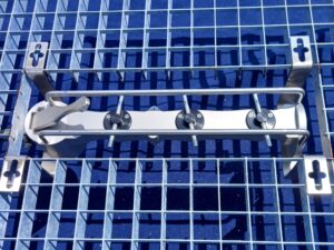 • Les Supports encastrement caillebotis permettent d’encastrer le Foot Blow 1010 et le Foot Blow 1011 dans un caillebotis en acier ou un plancher en bois d’une zone de lavage. Il suffit de réaliser auparavant une découpe à la meuleuse ou à la scie dans le caillebotis ou le plancher de la dimension du Foot Blow 1010 ou du Foot Blow 1011.