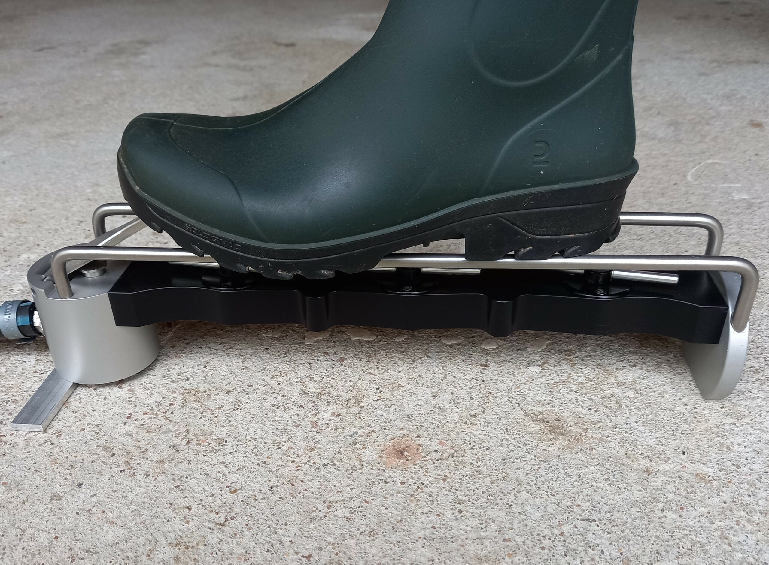 Bien que sa conception et son design soient très similaires au Foot Blow 1010, sa surface de nettoyage est plus grande, et sa puissance de soufflage est sans doute la plus forte de toute la gamme Foot Blow. Ses 3 rotors et ses 6 trous fixes bien répartis décollent aisément l’herbe, la terre et la boue agglomérée sous la semelle, et cela en quelques secondes seulement.